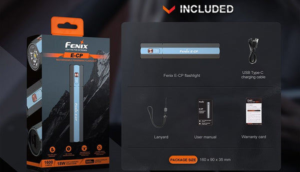 E-CP is also equipped with intelligent temperature control design, using Fenix's new utility patent-self-developed intelligent temperature control protection system, through the comprehensive control of current and real-time temperature, to ensure that the flashlight temperature does not exceed 60 degrees, to avoid the risk of scald.