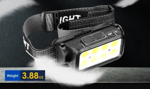 A type C charging port with a 4 stage power level indicator. A large capacity 1200mAh battery ensures long run times.It’s a lightweight headlamp which is only 110g or 3.88oz (including battery), and is rated to IP65 weather resistance for dust and waterproofing.