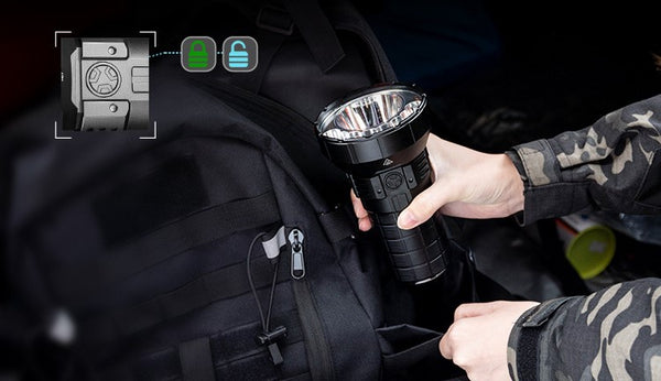 Both the Imalent MR90's spotlight and floodlight can be used alone. By clicking on the switch, the MR90 will turn on the memory gear, which is the form of illumination when it was last turned off. At this time, quickly press the switch three times to switch between the three modes of pure spotlight, pure floodlight and full open, and the gear remains unchanged.
