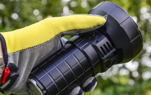 Imalent's flashlights are basically dimmed by pressing the switch on the side, and the metal side button is located on the plane of the lamp neck, which is conducive to finding the operation quickly by hand in the dark. The diameter of the switch is about 13 mm, the inside is an electronic switch, and the life is more than 100,000 times.Holding Imalent MR90, the thumb can naturally fall on the position of the switch. There are anti-skid lines on the surface of the switch, which further improves the pressing feel. The key travel is about 1mm. The triggering feel is clear and easy to operate.