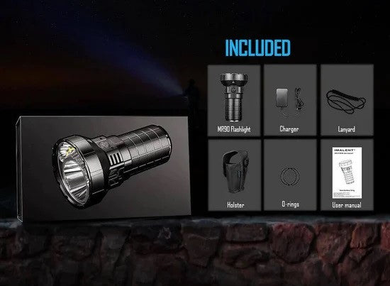 Imalent MR90 is a special-shaped flashlight with 8 xhp70.2 lamp beads forming a crescent shape, encircling the SBT90.2 lamp beads in the middle, with distinctive lighting features of both far and near, 50000 lumens, bringing a different lighting experience.