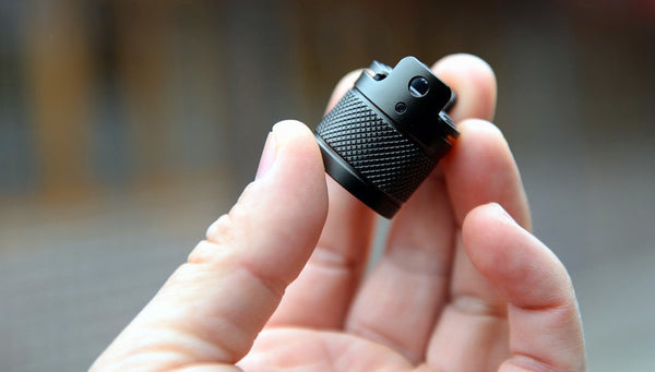 There is a fine knurling at the opening and closing position of the tail finger, which can increase friction and easily twist the tail cover when replacing the battery. In the figure below, you can see the rope holes at the end of the flashlight, one on each side of the III M.