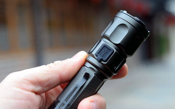 The flashlight head is designed with a power indicator. In the shutdown state, click the button on the tail side to enter the power indicator, which will be closed after displaying twice. Red light 1 flashes when the power is below 10%; red light 2 flashes when the power is between 11% and 40%; red light 3 flashes when power is between 41% and 90%; Over 91% of the battery, the red light flashes 4.