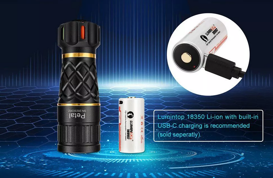 Powered via a single 18350 battery, these can be purchased separately, with ones available with type C ports built in (for convenience or for users without a battery charger).