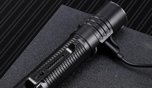 Der GT15 V2 verfügt über einen XHP 70-Emitter der zweiten Generation, der heller und langlebiger ist als je zuvor! Der GT15 V2 bietet Ihnen verschiedene Batterieoptionen, da die Leuchte mit 2 CR123-Batterien, 1 18650 oder 1 21700 Lithium-Ionen-Akku betrieben werden kann. Die Akkus können über den standardmäßigen und leicht verfügbaren USB-C-Anschluss (wer hat heutzutage keinen?) am Kopf der Leuchte aufgeladen werden, mit einer Gummiabdeckung zum Schutz vor Staub und Wasser.