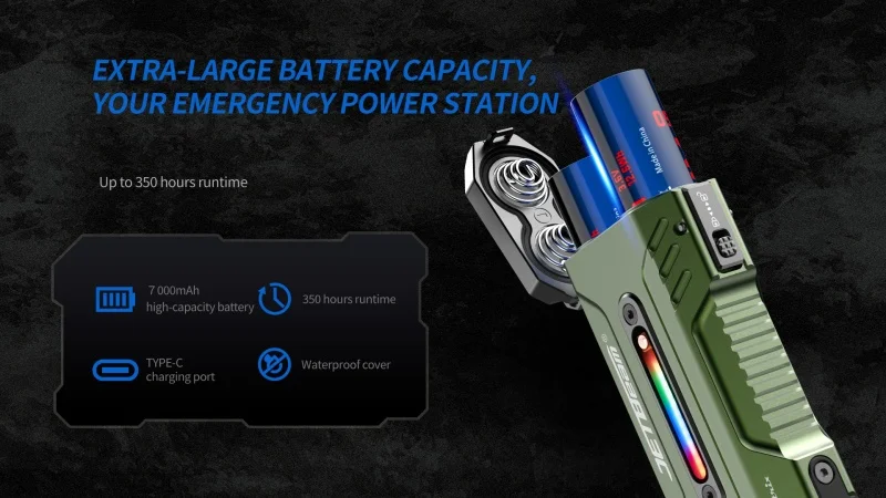 - Maximum Runtime: Floodlight mode 350 hours; Spotlight mode 240 hours