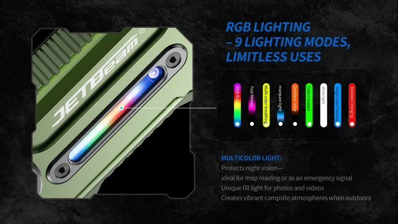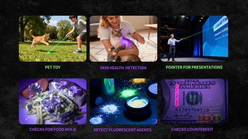 - White Light/UV Light/Green laser/RGB Light; One light for multiple uses