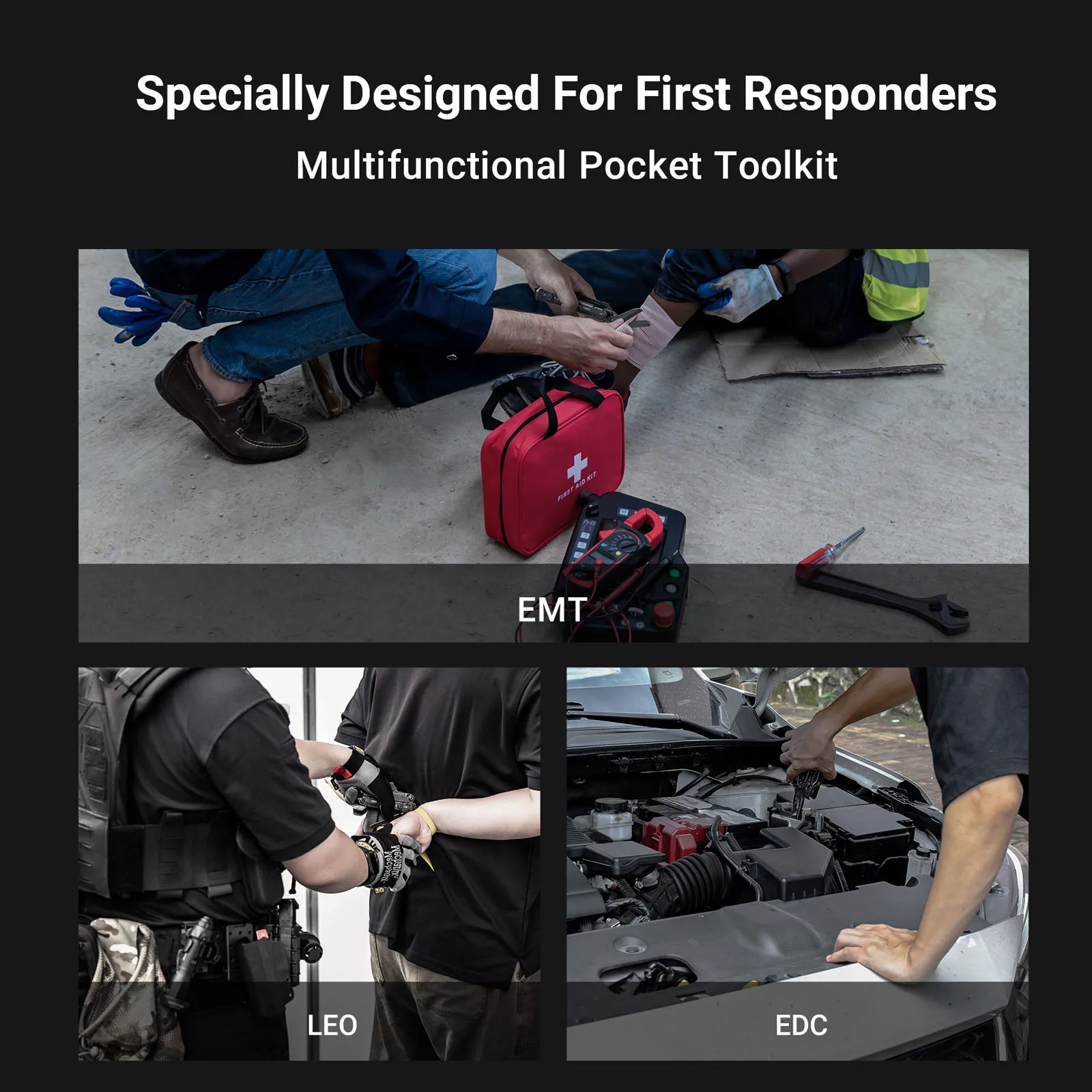 Every tool on the MT20 serves a specific emergency response function. The oxygen tank wrench provides quick access during patient care, while the dedicated handcuff cutter and tactical strap cutter give you rapid cutting options during extractions. The 50Cr15MoV stainless steel knife blade maintains its edge through repeated use, secured by a positive liner lock for safety during high-stress deployments.