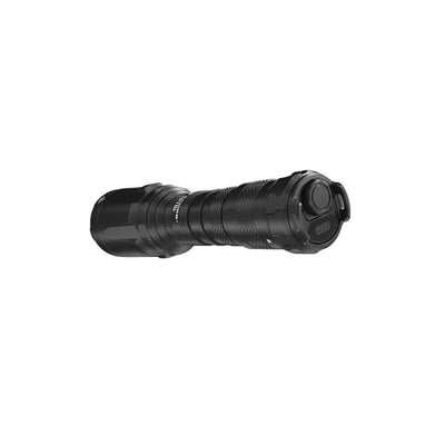 Durch Drehen des Drehschalters kann vom taktischen Modus auf Turbo mit Tactica Momentary Illuminatio, auf die Turbo-Stufe mit 2100 Lumen, die mittlere Stufe mit 300 Lumen, die niedrige Stufe mit 30 Lumen und schließlich auf die Sperrfunktion der Schnittstelle umgeschaltet werden, um mögliche versehentliche Zündungen zu vermeiden. Der doppelte Endschalter macht diese Leuchte einfach und intuitiv zu bedienen und besonders nützlich für Strafverfolgung, Jagd und taktische Anwendungen.