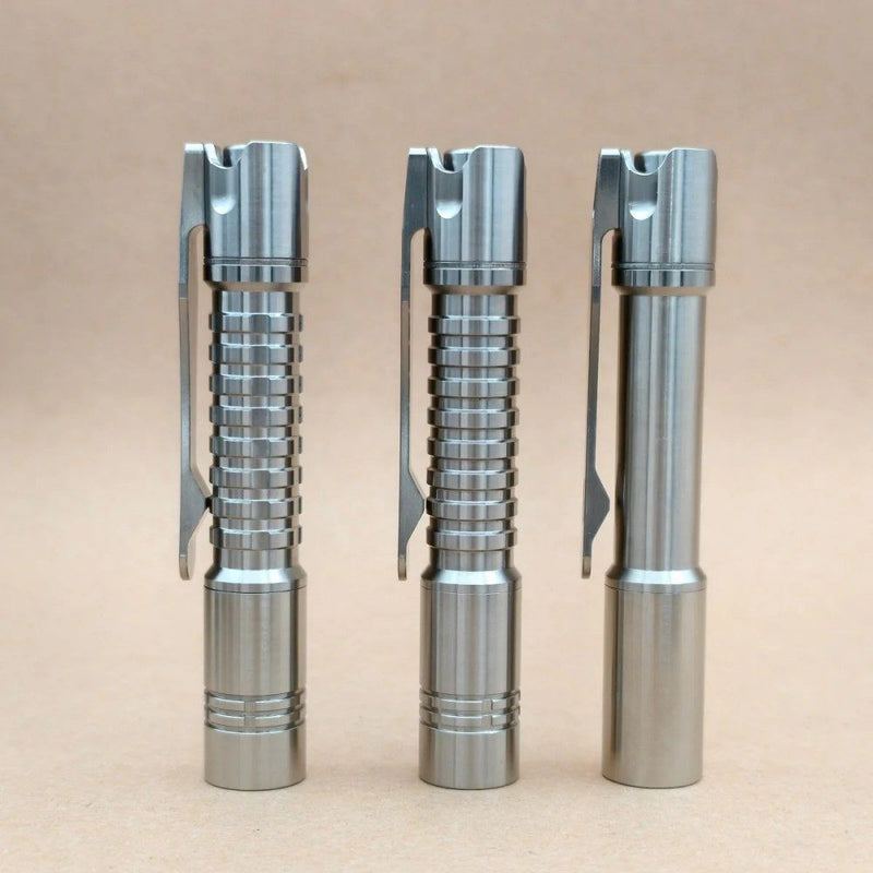 Every design element of the MK3 serves both form and function. The titanium body, with its signature “pineapple” texture, provides excellent grip while maintaining a timeless aesthetic. Its natural metallic sheen, complemented by the anodized accents, gives it a refined yet rugged character. The combination of precision CNC machining, minimal gaps, and robust material choice makes it feel both lightweight and solid in the hand. Despite its compact size, the MK3 carries a sense of permanence — a flashlight meant to be used, admired, and passed down.