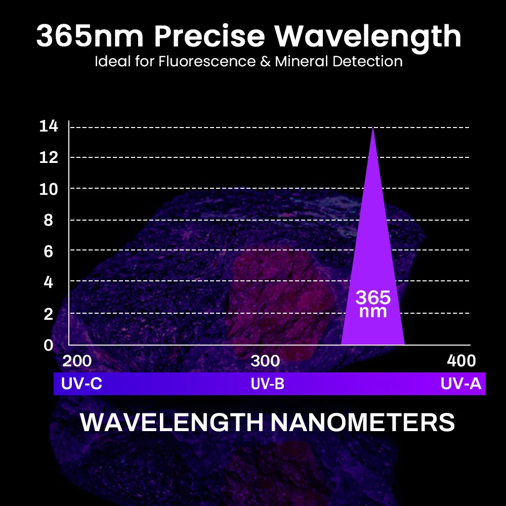 1. Powerful LED Flashlight: The SOFIRN SR15 UV flashlight is equipped with 4 * SST08 UV LEDs, It features a high power output of 6000 milliwatts with 365-nanometer ultraviolet light (equivalent to 12 watts of ultraviolet capability), which can significantly enhance fluorescence effects. It is highly suitable for tasks such as scorpion detection, mineral identification, micro-crack inspection, and fingerprint development. The precise 365-nanometer wavelength ensures accurate and clear results in both professional and outdoor scenarios.