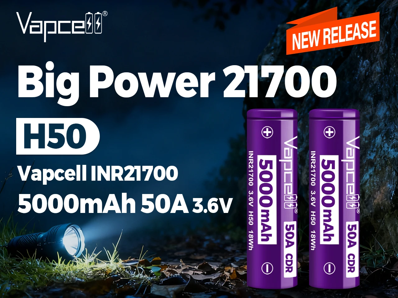 Vapcell H50 INR21700 5000mah 50A High Power lion Rechargeable Battery Cell