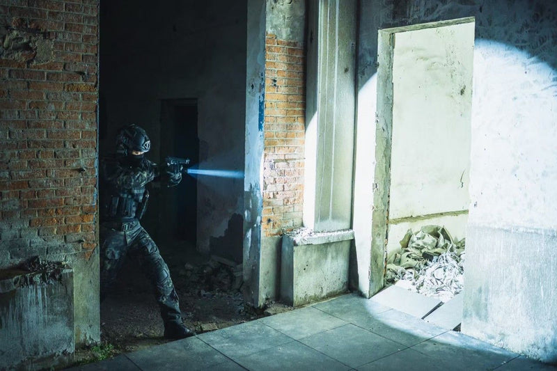 Die Taschenlampe verfügt über drei taktische Beleuchtungsoptionen: