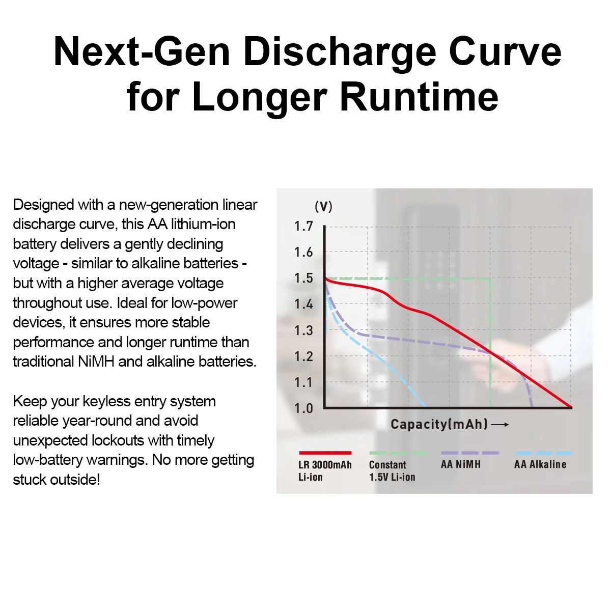 ~Stable Power Output – Linear discharge for consistent performance.