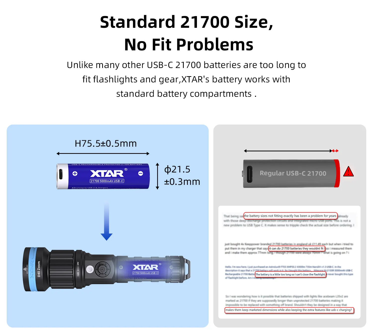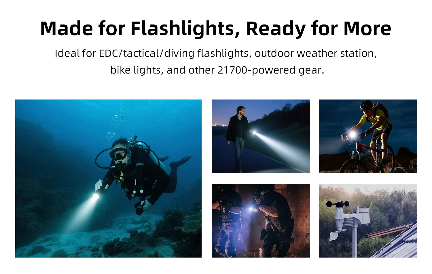 Standard 21700 Size: Perfect for flashlights and other devices.