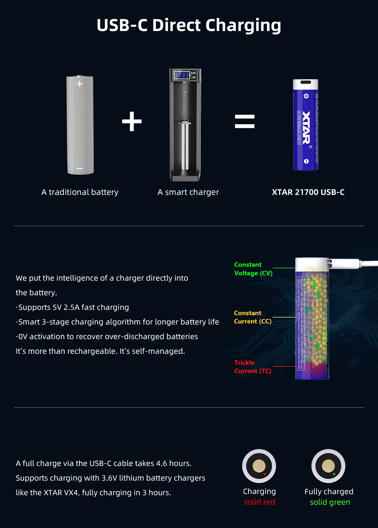 Xtar 3.6V 21700 5000mAh USB-C Rechargeable Battery