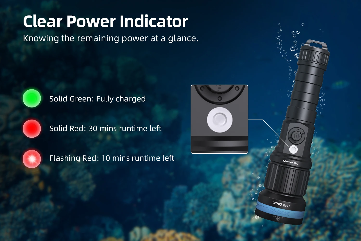 Universal Diving Light: Suitable for all underwater activities,including recreational diving,technical diving,cave diving,wreck diving,fishing,industrial diving,and rescue operations.