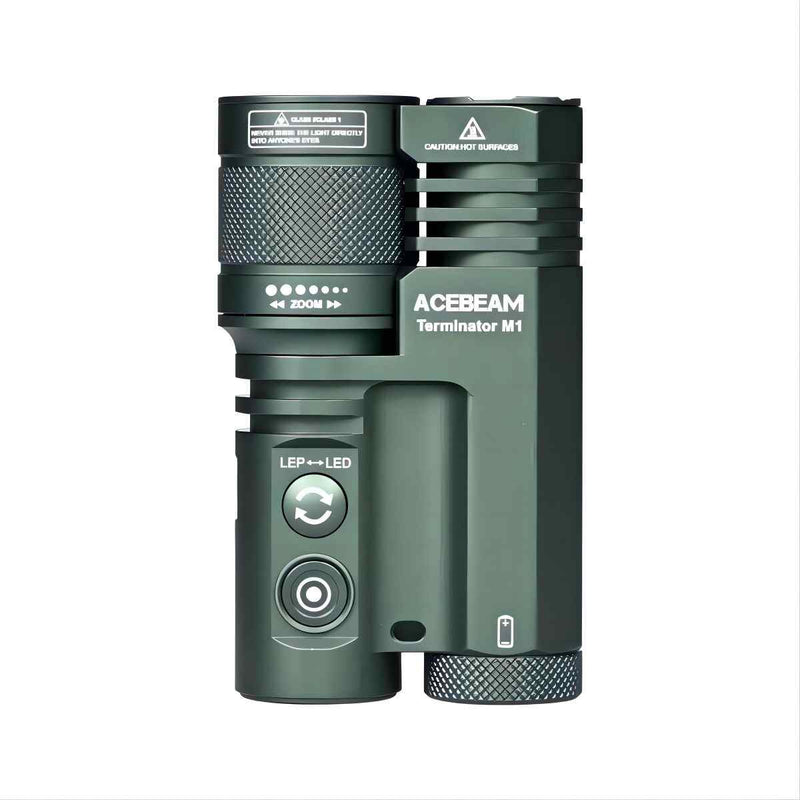 The Acebeam Terminator M1 is not just a flashlight; it's a marvel of lighting technology that combines the power of dual light sources to deliver exceptional performance and versatility. With its unique blend of LEP (Laser Excited Phosphor) and LED illumination, internal zoom design, and an array of advanced features, the Terminator M1 is the ultimate lighting tool for enthusiasts and professionals alike.The Terminator M1 features a dual light source system that includes one LEP (Laser Excited Phosphor) and three LEDs, with options for both cool white (6500K) and high CRI (Color Rendering Index) 90+ Nichia 519A LEDs (5000K). This dual light source setup gives you the best of both worlds, allowing you to switch between LEP and LED illumination to suit your specific needs. One of the standout features of the Terminator M1 is its internal zoom design for the LEP source. You can adjust the focus of the LEP beam without changing the size of the flashlight. Simply rotate the LEP head left or right to seamlessly transition between a wide 16° floodlight and a concentrated 3° spotlight. This zoomable capability enhances the flashlight's versatility, making it suitable for various tasks and scenarios.