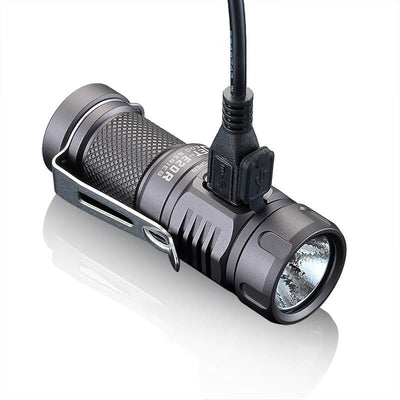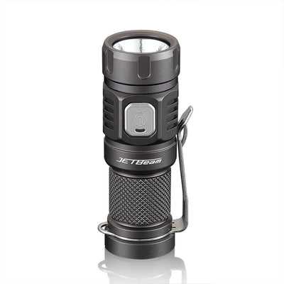 The JETBeam E20R is a small light and compact edc flashlight with extremely small dimensions, its maximum output is 990 lumens. The body made of aircraft aluminum is CNC machined. The body of the flashlight is extremely robust and has HA III military grade hard anodizing which makes it extremely robust, resistant to scratches, corrosion and bad weather. The JETBeam E20R is equipped with an SST-40 N4 BC LED whose efficiency is over 160 lumens per watt. The optical part is composed of a mineral glass with anti-reflective treatment on both sides and an aluminum reflector with an orange peel treatment. This flashlight adopts an efficient constant current circuit that provides a Max runtime of 100 hours when used on the lowest output level. The interface is managed entirely by the single side switch on the flashlight: When the flashlight is on, it is possible with a simple click to switch from one output level to another by scrolling through the levels according to the turbo, high, medium, low order. With a double click, on the other hand, it is possible to switch from the turbo level to the stroboscopic level. This light can be powered from a single 16340 cell but alternatively it is also possible to use a CR123A cell. But the runtime and the powers will vary according to the type of cell used. When using a 16340 cell the available levels are: ultra low of 0.7 lumens, low of 88 lumens, medium of 350 lumens, high of 990 lumens. When a CR123A cell type is used, the available output levels are ultra low from 1.1 lumens, low from 72 lumens, medium from 220 lumens, and high from 520 lumens. The maximum runtime using a 16340 or CR123A cell type is 100 hours on the Low level while it is 1 hour for the Turbo level with CR123A cell or 0.5 hours on the Turbo level using a 16340 cell.