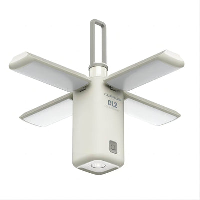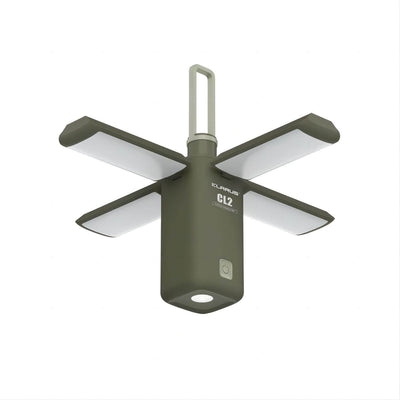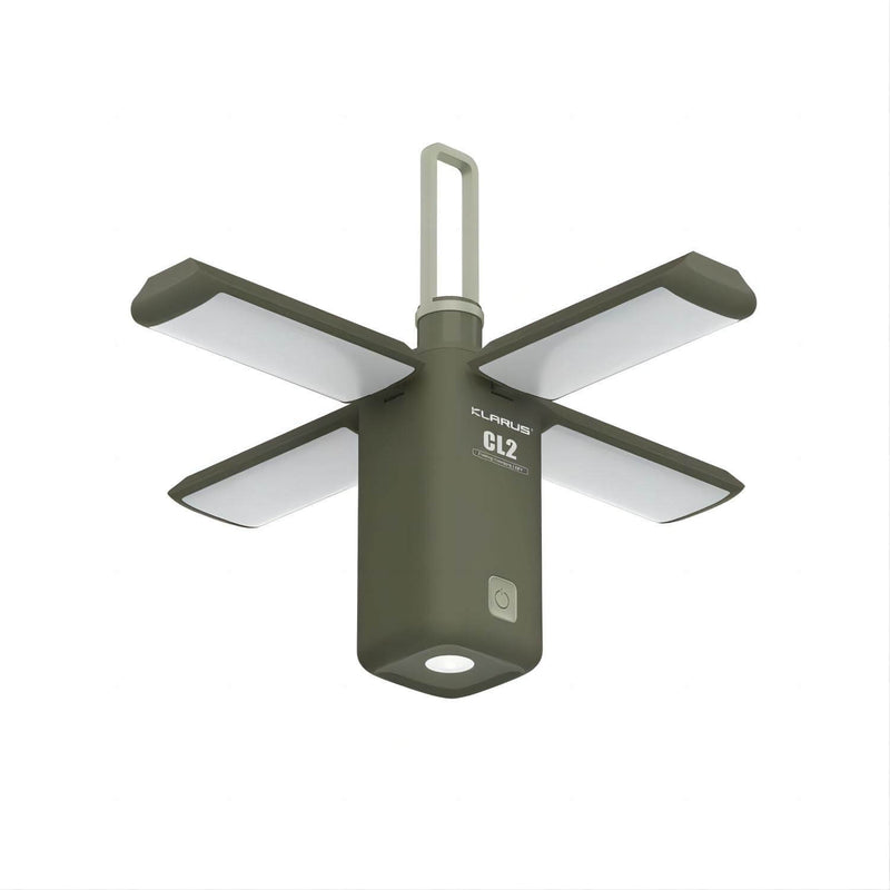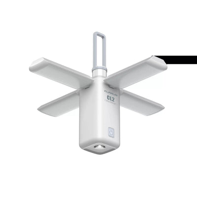 The Klarus CL2 is a multifunctional lantern with many interesting features. It is composed of four movable parts that can be directed in any direction, with an angle of 90 °. They allow you to illuminate at 360 ° as if this light were a small chandelier. There are four selectable levels, in fact we have a low level of 30 lumens in warm light, a medium level of 150 lumens in warm light, a high level of 750 lumens in warm light and a high level of 750 lumens in cold light. In fact, we have the possibility of lighting with two different colors and with warm light or cold light. The management of the interface is done through a single switch on the side of the flashlight body. With a simple click it is possible to change the levels according to the order low hot, medium hot, high hot and high cold. Inside there is a 10400 mAh battery that allows for high runtimes. The charging interface is Type-C and ensures fast charging of the internal battery. This flashlight also works as a Power Bank, in fact, it is equipped with a USB-A port that allows you to charge any electronic device, such as a smartphone or tablet. In the lower part of the flashlight there is also an additional light that allows you to have a directive beam and allows you to use the flashlight in your hand. This light also has the ability to light up with a red light with a wavelength of 620-760 nm. This red light can be seen from a distance of hundreds of meters and this can be used to increase safety at night and be seen in the dark, for example in emergency situations. In addition to the flashlight, the package also includes a Type-C charging cable, the user manual, an adapter for iOS devices and a carrying bag. Output levels are divided as follows: High cold light of 750 lumens and 4h and 45 min of runtime, High warm light of 750 lumens and 04h 45min of runtime, Medium warm light of 150 lumens and 12 hours of runtime low warm light with 30 lumens and 60 hours of runtime, 100 lumens light light with 18 hours of runtime 1712 candles and 83m distance, 100 lumens SOS. and flashing red light. Water resistance is given according to the IPX5 standard, while resistance to falls is given up to 1 m in height. Cold light has an e color temperature of 6000K, while warm light has a color temperature of 3000K. The body is made of ABS + PC material. The weight is 420 grams, including battery. The intelligent temperature control keeps the flashlight between 40 and 50 ° C. The battery capacity indicator gives information on the cell capacity. When the cell has the capacity greater than 99% then four LED indicators will remain on .. If the capacity is between 76% and 99%, the indicator lights will be four and the fourth will flash slowly. If the cell capacity is between 51% and 75%, there will be three light indicators on and the third indicator will flash slowly. If the capacity of the cell is between 26% and 50%, there will be two LED indicators lit and the second will flash, if the capacity of the cell is less than 25%, there will be only one LED indicator flashing.