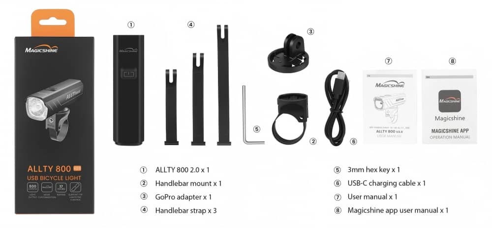 In terms of form and finish, the ALLTY 800 V2.0 showcases Magicshine’s commitment to quality and aesthetic simplicity. The body is sleek, modern, and minimalistic, making it an attractive yet discreet addition to any bike. Despite its compact design, it houses an impressive amount of power and technology, reflecting Magicshine’s attention to performance without sacrificing portability.