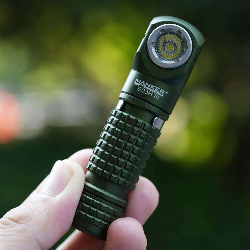 The Manker E03H III is an ultra-compact, versatile angle flashlight that stands out as both an everyday carry (EDC) essential and a high-performing headlamp. Designed for users who demand reliability, this third-generation model brings a whole new level of performance, usability, and durability, making it one of the best in its class for 14500/AA-powered flashlights. With its maximum output of 1,200 lumens, it easily competes with larger lights while maintaining a pocket-friendly size.