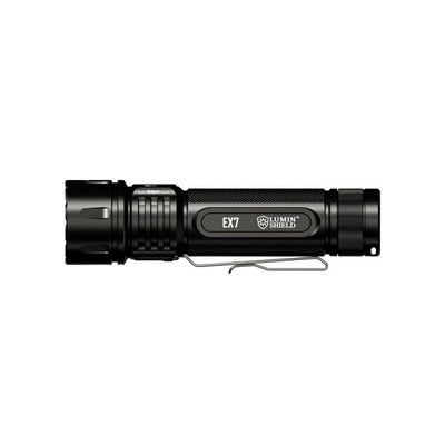 The flashlight also features LUMIN SHIELD®, a powerful 6,000-lumen burst mode designed to flood large areas with light or provide immediate illumination in critical situations. For emergencies, it includes a randomly changing strobe mode, engineered to disorient threats while preventing visual adaptation—a valuable feature in tactical or self-defense contexts. Combined with long-lasting, stable output, the EX7 represents a new level of operational performance.
