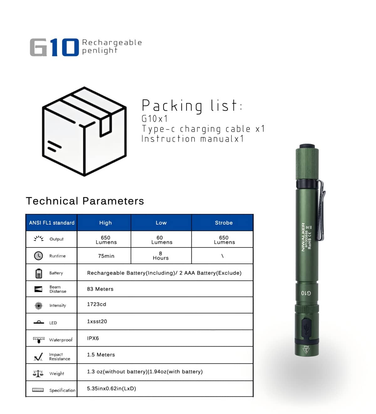 Niwalker G10 Rechargeable Penlight