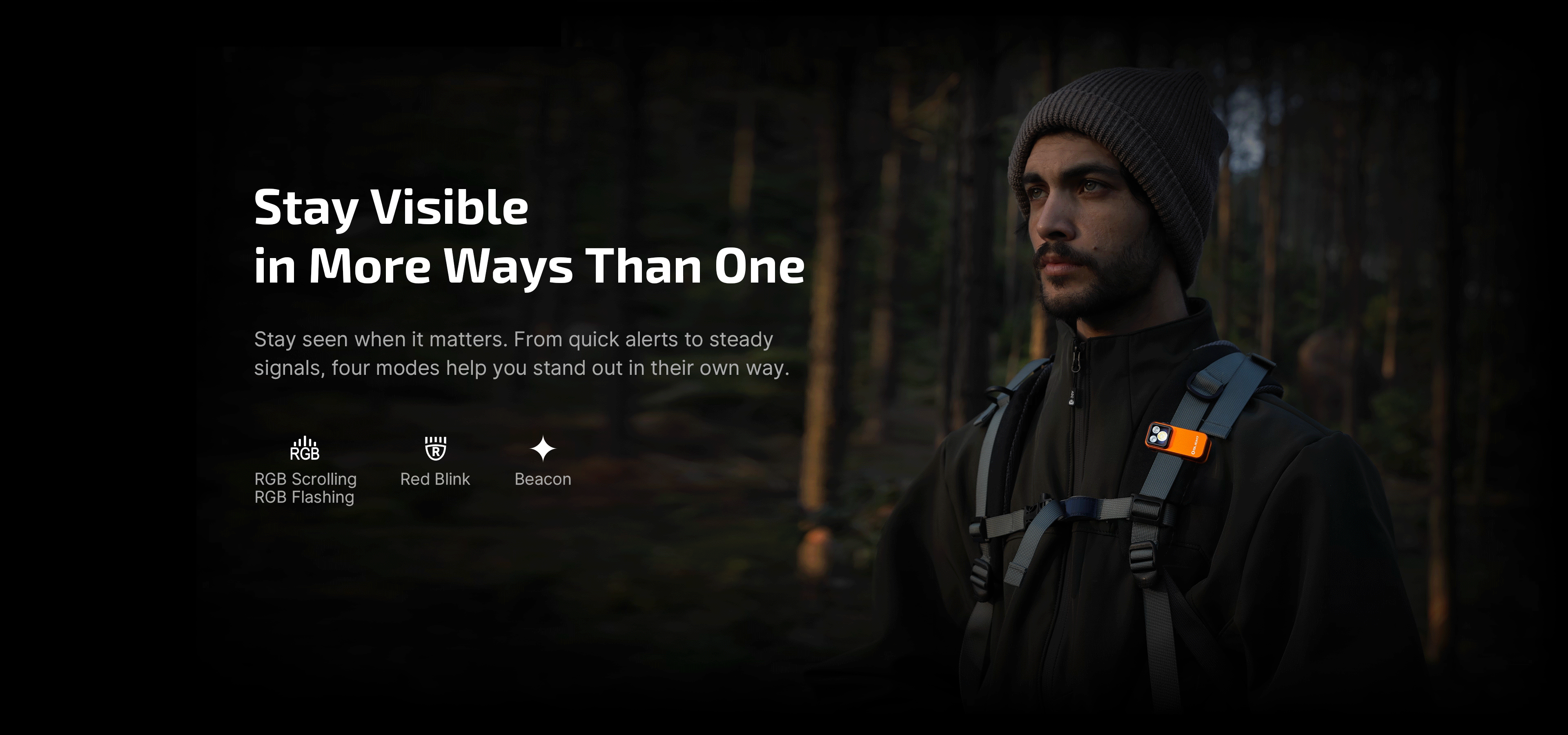 RGB Lighting: Red, green, and blue lights support night use, location marking, visual identification, and expressive lighting, with both steady and flashing modes for flexible application.