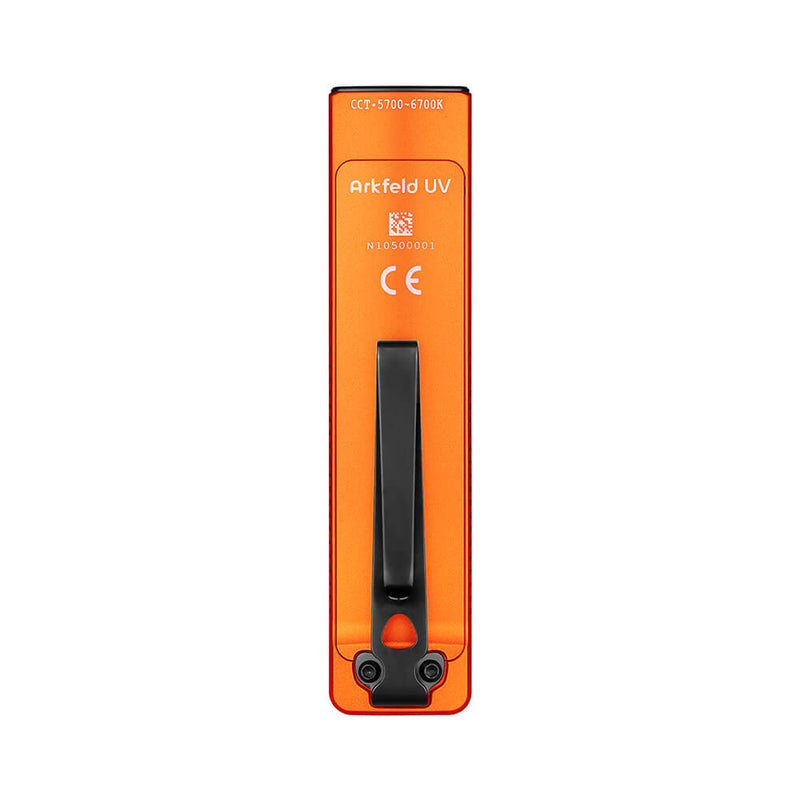 The Olight Arkfeld UV is an elegant dual light flashlight equipped with a white light LED and a UV light source. Ideal for business presentations but also as a classic EDC for everyday use. This light can be equipped with High-Performance Neutral White LED (4000k~5000K) High-Performance Cool White LED (5700K~6700K). The mac light intensity is 1,808cd with 85 meters of max throw and max runtime of 8 days.