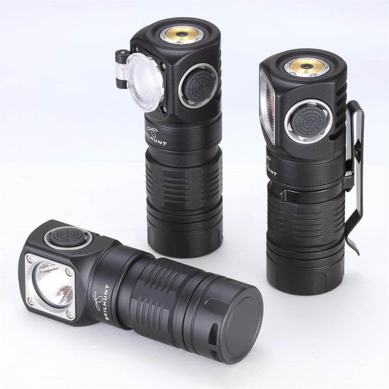 The Skilhunt H04 H04R H04F RC Mini is a small torch with an L-shaped design, ideal as an all-round edc torch but also as a normal headlamp for sports, outdoors and all those outdoor activities. The main difference between the three different versions is essentially the type of reflector that the flashlight has: in fact, the H04 RC Mini version is equipped with a TIR lens that produces a wide and diffused beam, the H04R RC Mini is equipped instead with a reflector that gives the beam greater throw and greater distance, while the H04F version is a H04R with the addition of a diffuser filter, so the user can choose at will between a shooting beam and a flood beam without having to change the type of light. The Skilhunt H04 H04R H04F RC Mini is on the market with different LED configurations, in fact it is possible to buy it in the Cool White / Neutral White / High CRI configuration. The maximum output is ANSI 1000 Lumens for the CW version or ANSI 790 Lumens for the Hi CRI version. The maximum distance that can be reached is 123 meters for the H04R/H04F RC Mini models or 113 meters for the H04 RC Mini model. The maximum light intensity is 800 cd for the H04R/H04F RC Mini models or 3200 cd for the H04 RC Mini model. The water resistance is given according to the IPX-8 standard while the impact resistance is 1 meter. The dimensions are Length 70.9mm / 2.79 inch, Head diameter 23.5mm / 0.93 inch, Body diameter 23.5mm / 0.93 inch while the weight is 45g / 1.59oz (without battery). In addition to the flashlight, the package also includes a Headband, clip, lanyard, magnet replace rubber pad, Operator's manual, Warranty card, Spare O-ring.