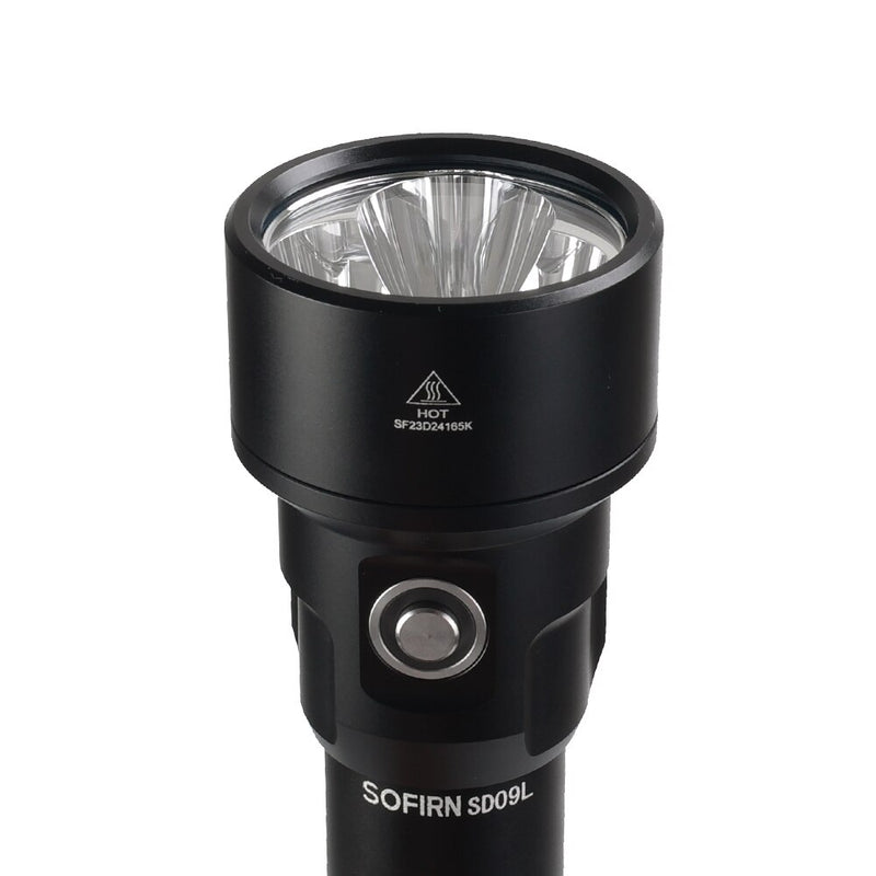 The Sofirn SD09L is a high performance dive light designed to withstand the most demanding underwater environments. Equipped with three powerful SST-40 LEDs, it can deliver outstanding brightness up to 6800 lumens. This model uses two 21700 rechargeable Li-ion batteries, allowing for a longer runtime and longer life. The flashlight features a body made of heavy-duty A6061-T6 aluminum alloy, which ensures strength and durability. The tempered mineral glass lens ensures optimal protection and efficient light transmission. Thanks to its IPX8 standard water resistance, the SD09L can be used in diving up to 100 meters deep, allowing users to explore the underwater wonders with a clear and bright view. The flashlight is equipped with an enhancement driver that ensures optimal performance and stable operation. It also features a memory mode that keeps the last used brightness setting (low/medium/high/turbo) in memory. The SD09L is designed to offer additional protection with a low voltage warning function, which indicates when the battery voltage drops below 2.8V. This allows users to recharge the flashlight or replace the batteries to ensure continuous operation. In summary, the Sofirn SD09L is a powerful and reliable diving flashlight, ideal for diving enthusiasts. diving and underwater exploration. With its light performance, water resistance and long battery life, it offers a complete solution for a safe and fulfilling diving experience. The flashlight features a low standby current of ≤50uA, which helps conserve battery energy . In addition, thanks to the memory mode, the flashlight memorizes the last used brightness setting (low/medium/high/turbo), making it easier to use and allowing quick access to the desired mode. The SD09L is equipped with an enhancement driver which guarantees an optimal performance of the LEDs, offering a constant and stable brightness during use. The Sofirn SD09L is a high quality diving torch that offers high performance, resistance and reliability. With its light output, battery life and water resistance, it is an ideal companion for diving and underwater activities, enabling enthusiasts to explore and discover the wonders of the underwater world with confidence and ease.