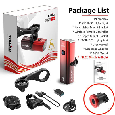 In conclusion, the TOWILD CL 1200Pro Rechargeable Bike Light is a top-tier lighting solution that combines powerful illumination, advanced features like wireless remote control, and robust weatherproofing to enhance your cycling safety and enjoyment. Whether you're navigating city streets or conquering off-road trails, this bike light will not disappoint. It's an excellent choice for riders seeking a reliable, high-quality front light to illuminate their path