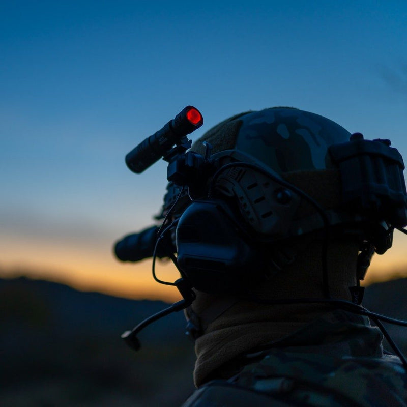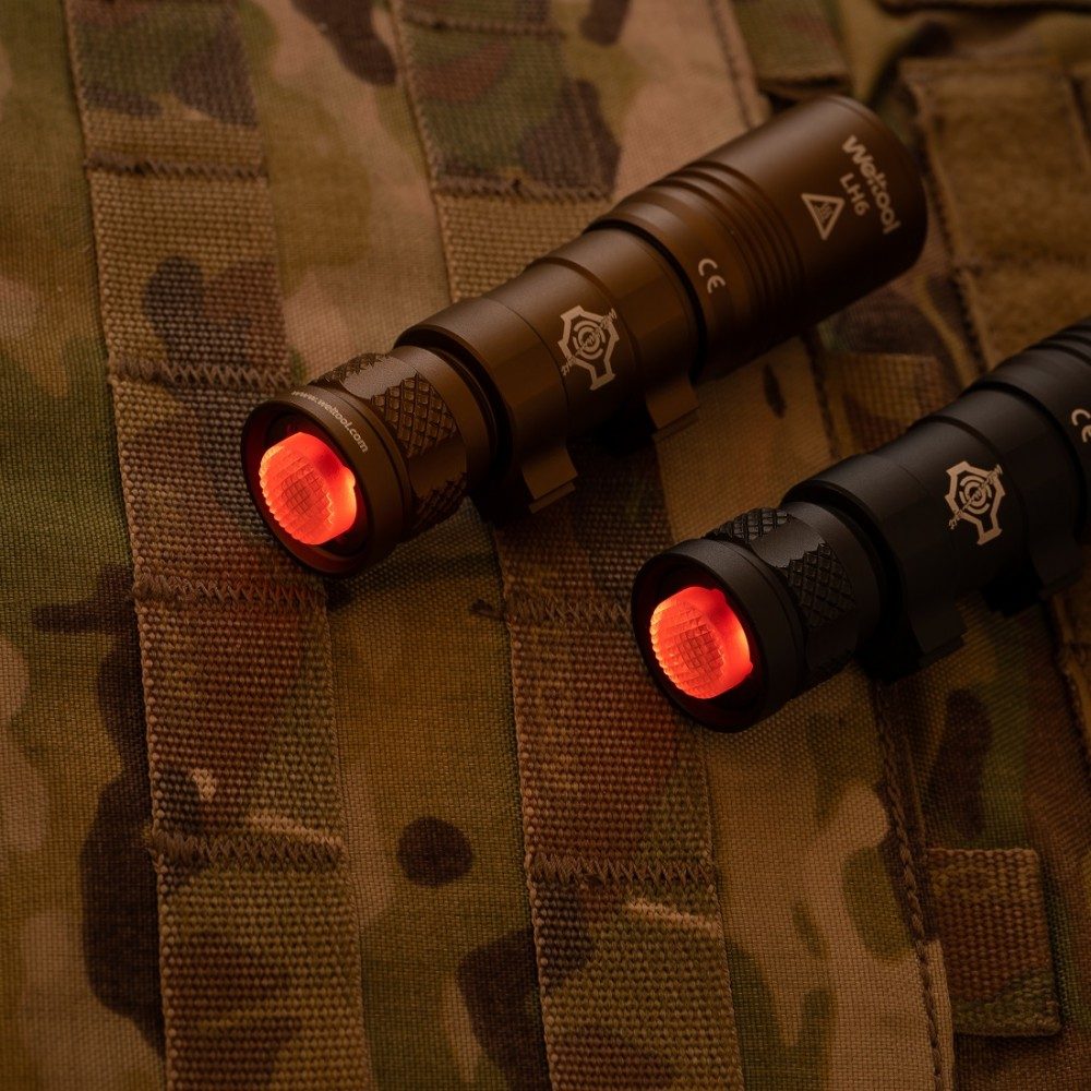 The tail cover has a built-in red indicator light. When the flashlight, weapon light or helmet light is installed with batteries, the red light inside the tail cover will light up. When the main light turns on, the tail light turns off.