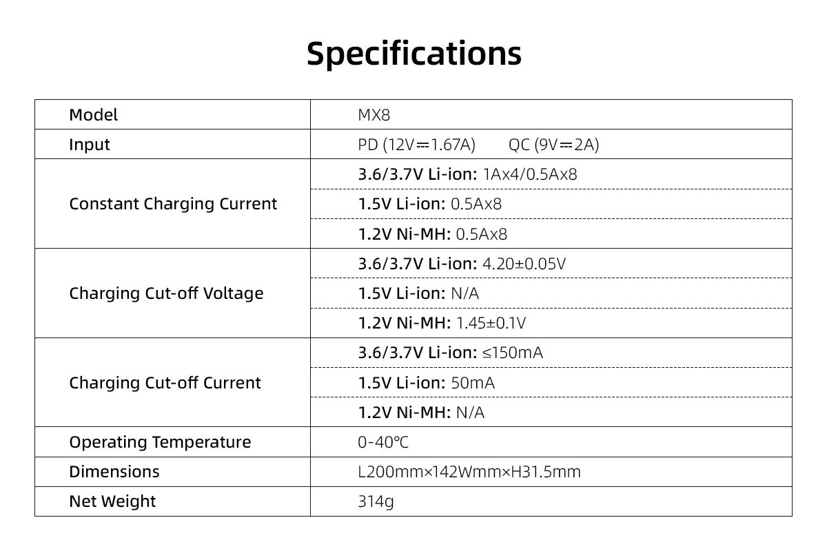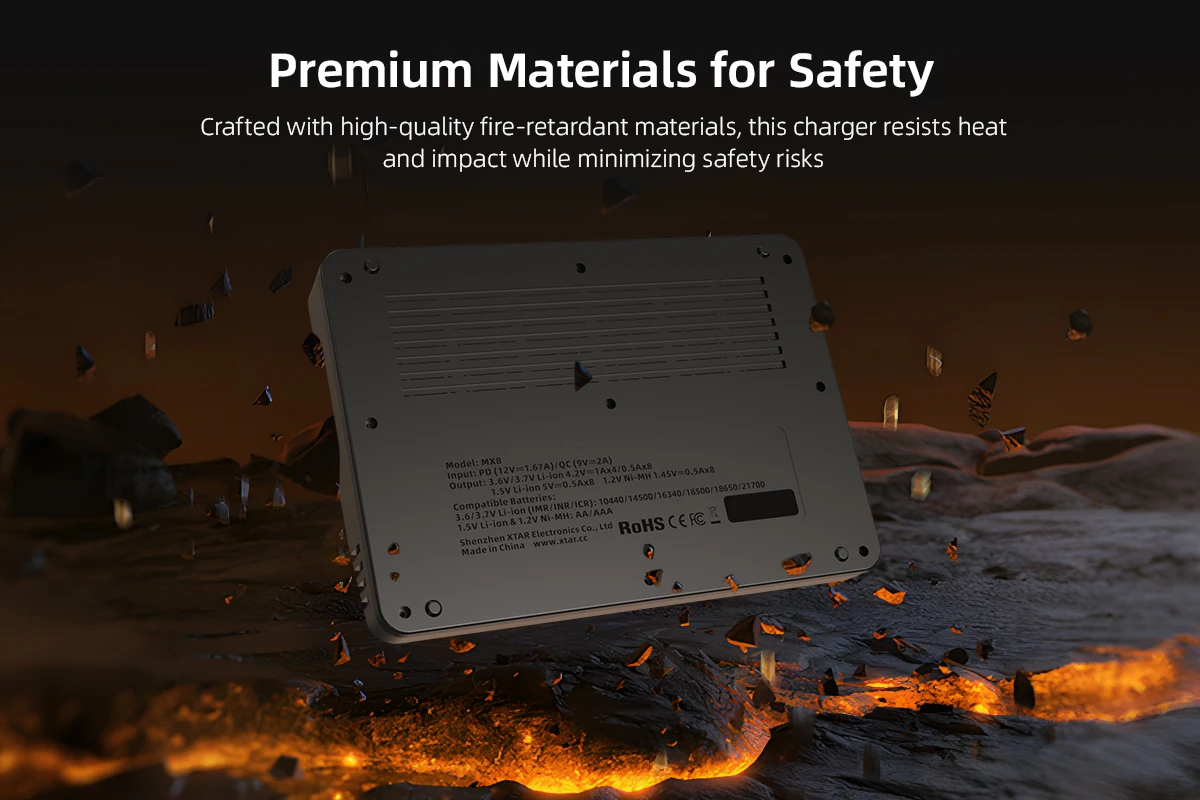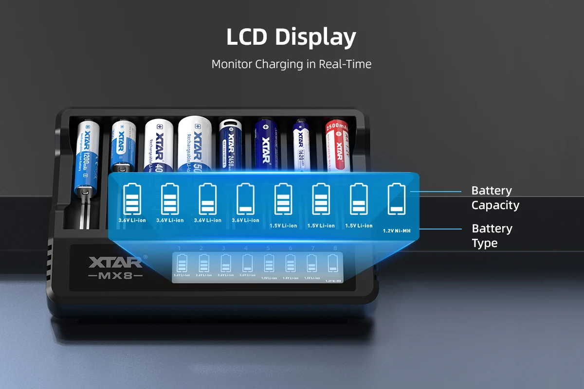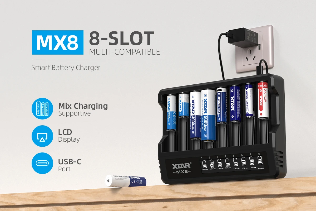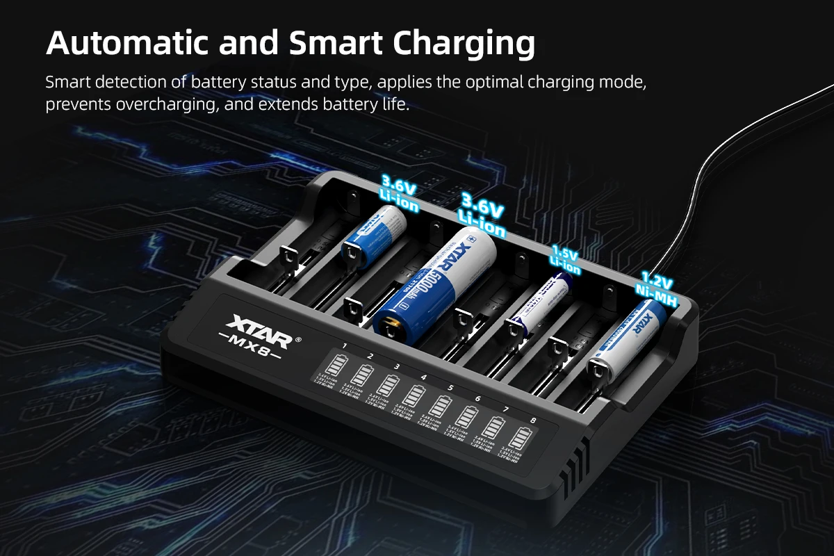 Eight charging slots are completely independently controlled, allowing simultaneous hybrid charging of different types and specifications of batteries without interference, doubling charging efficiency.