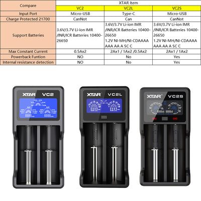 ⢠Charge all popular 3.6V/3.7V Li-ion/ 1.2V Ni-MH batteries